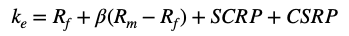 Tổng chi phí vốn chủ sở hữu (TCOE) = tỷ lệ phi rủi ro + tổng beta * phí bảo hiểm rủi ro vốn chủ sở hữu = tỷ lệ phi rủi ro + beta * phí bảo hiểm rủi ro vốn chủ sở hữu + phí bảo hiểm quy mô + phí bảo hiểm rủi ro cụ thể của công ty